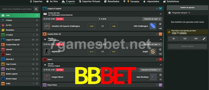 O BBbet oferece uma grande seleção de opções de apostas em e-sports com probabilidades competitivas